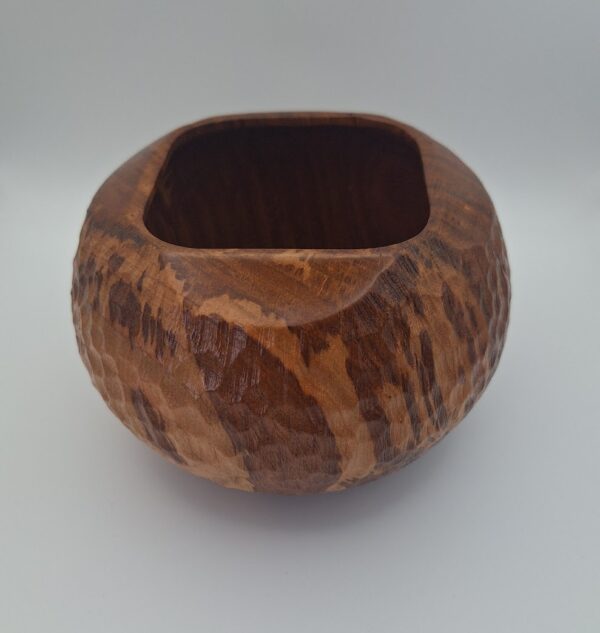 Cutting out the square opening made for an interesting challenge as did hollowing it when the opening was not round. I cut the opening before I did any turning using hand tools.