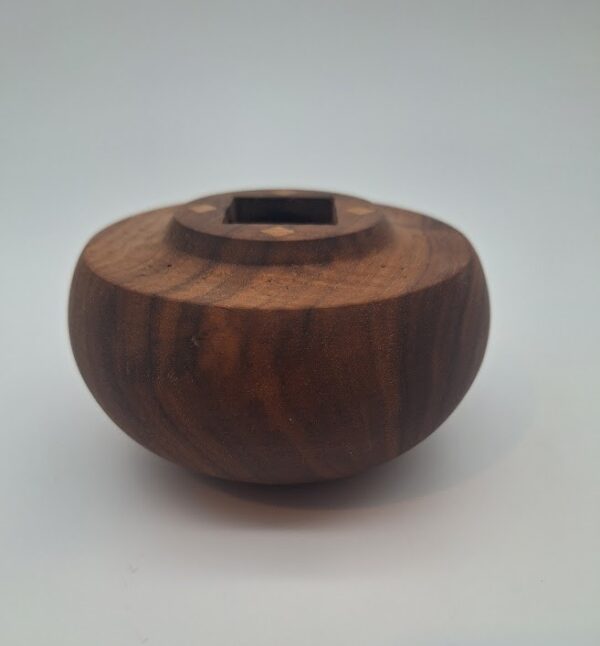 for the ash inlay with a square morticing chisel and inserted the square ash inlays. Then turned the outside shape.