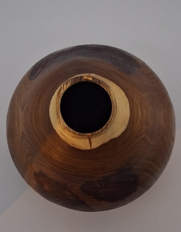 Wood: Laburnum. Size: 23.5cm x 21.8cm Dia. x 0.4cm., Location: In creator’s collection. Number:6A25-2