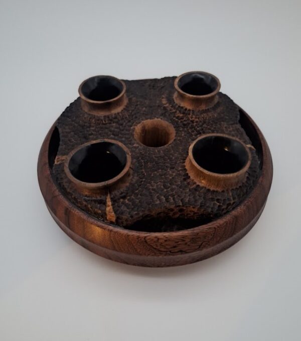 I made my piece from an offcut of a recycled oak bollard. It is endgrain turned and each vase is hollowed out.