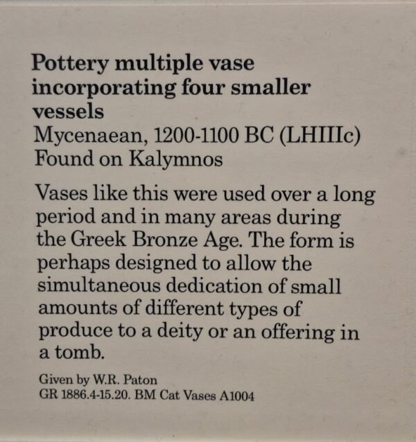 I visited the British museum in London in October 2025 with my buddy Liam (We were in London to attend the WIZADRY IN WOOD, 2025 exhibition https://turnersco.com/wiw/ ). I spotted a Mycenaean multiple vase in one of the exhibition cabinets. On seeing it I turned to Liam and said “I’m going to turn one of these”.